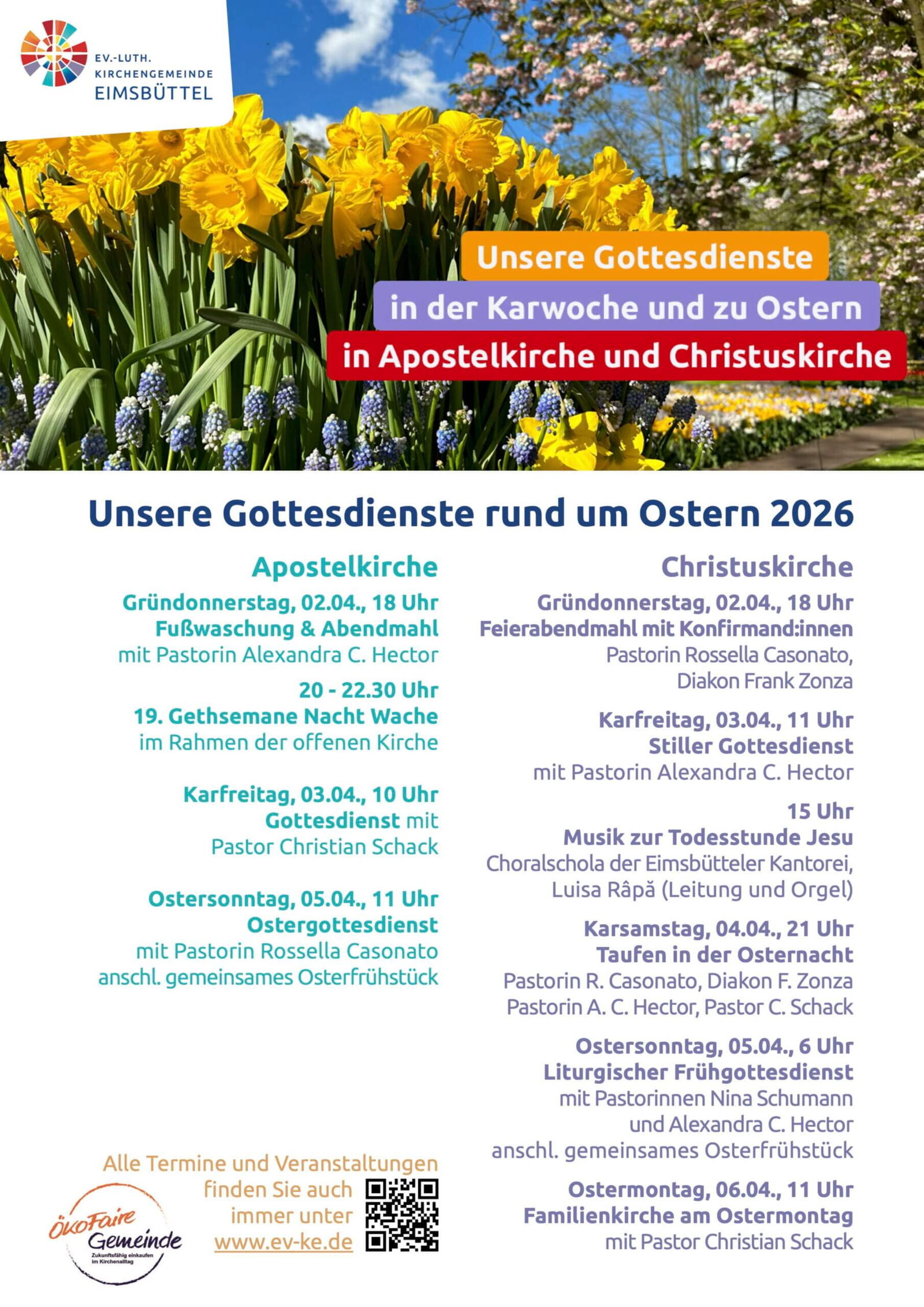 Wir freuen uns, wenn Ihr und Sie mit uns feiern und heißen Euch und Sie herzlich willkommen, auch zu unseren Andachten und zu unserem Friedensgebet in der Apostelkirche.