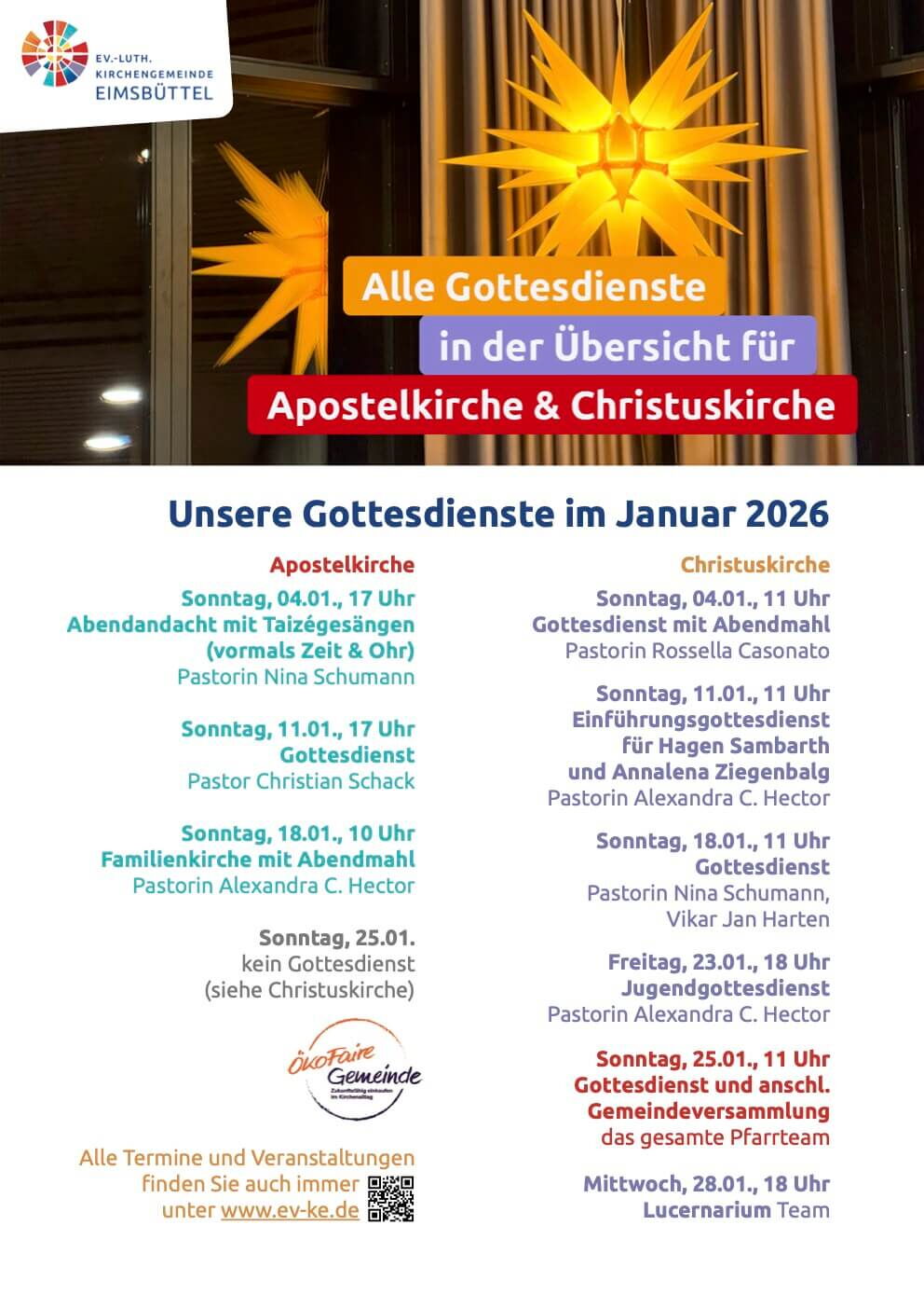 Wir freuen uns, wenn Ihr und Sie mit uns feiern und heißen Euch und Sie herzlich willkommen, auch zu unseren Andachten und zu unserem Friedensgebet in der Apostelkirche.