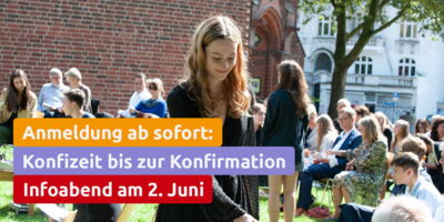 Alle Jugendlichen im Alter ab 12 Jahren können sich ab sofort zur Konfizeit anmelden, mit der Konfirmation im Juni 2023. Am 2. Juni um 18.00 Uhr stellt das Konfi-Team sich und die Konfizeit in der Christuskirche persönlich vor.