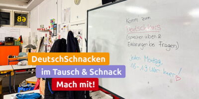 Die Geflüchteten lernen unsere Sprache in den Integrationskursen, aber können sie nur wenig anwenden. Deshalb veranstalten wir jetzt wöchentliche Gesprächsrunden. Mach mit! Nicht an Feiertagen.